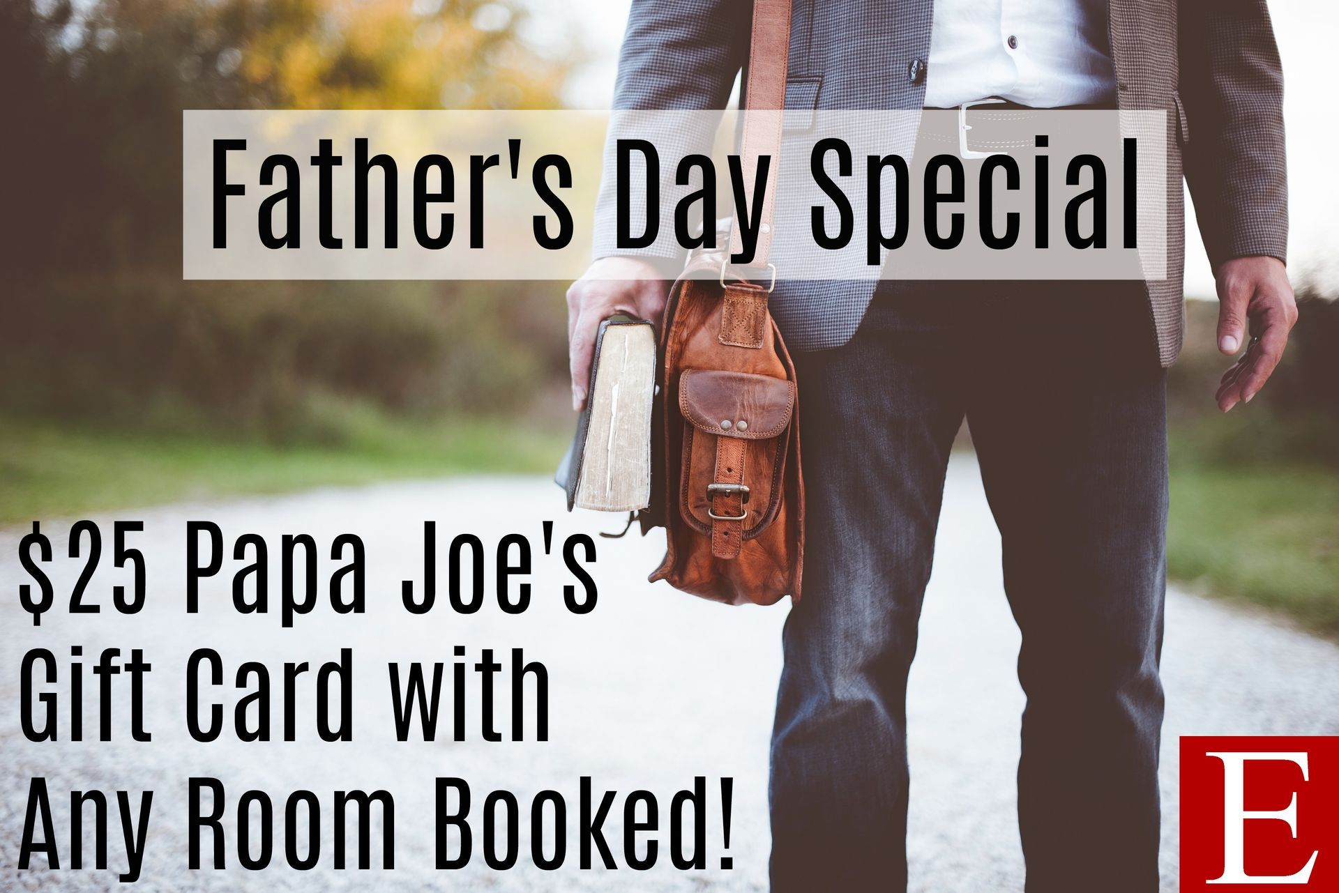 Father’s Day Special – $25 Papa Joe’s Gift Card with Any Room Booked!
